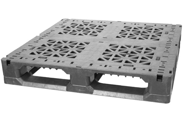 The GRS-3737 is a rackable plastic pallet with a small footprint that can handle a heavy load. It features a 6-rail base and a dynamic load capacity of 5,000 lbs. The pallet deck and base have rubberized grommets that reduce slippage of pallet as well as product. The GRS-3737 is open beam rackable to 1200 pounds. With the addition of 4 fiberglass reinforcement rods, the racking capacity increases to 2100 pounds.