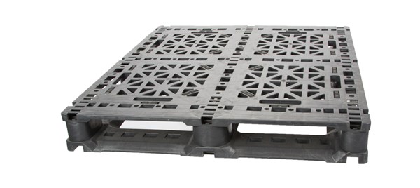 The GRS-MV-0R is a 48x40 rackable plastic pallet with an 800 pound racking capacity. With the addition of 3 reinforcement rods it can rack up to 2500 pounds.